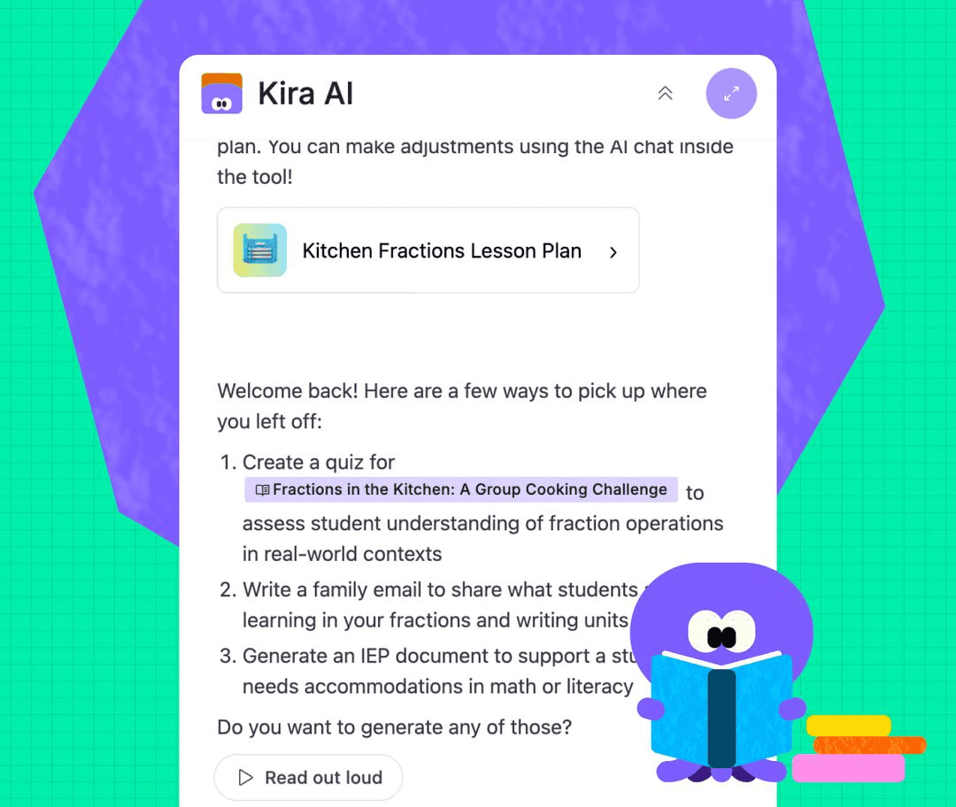 Kira replaces the workaround. Standards become the backbone. Student work becomes the signal. AI becomes the thing that finally makes them talk to each other.